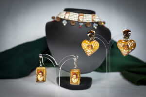 Und ein echter Eyecatcher. Strahlen Sie mit Weihnachtsschmuck. Sterne, Schneeflocken, Tannenbäumchen, Nikoläuse, Christkinder oder Engelchen glitzern als Ohrringe, Anstecker, Broschen und Ketten – handgefertigt von Veronika Wentz und Pragin.