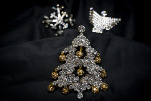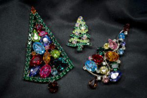 Geradezu edel: die hochwertigen Tannenbaum-Broschen aus Swarovski-Kristallen von Veronika Wentz.