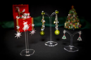 Besonders attraktiv: unsere silberglitzernden Schneeflockenohrringe oder die rotleuchtenden Weihnachtsmützenohrstecker.