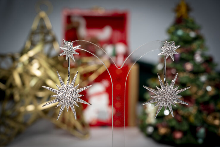 Besonders attraktiv: unsere silberglitzernden Schneeflockenohrringe oder die rotleuchtenden Weihnachtsmützenohrstecker.